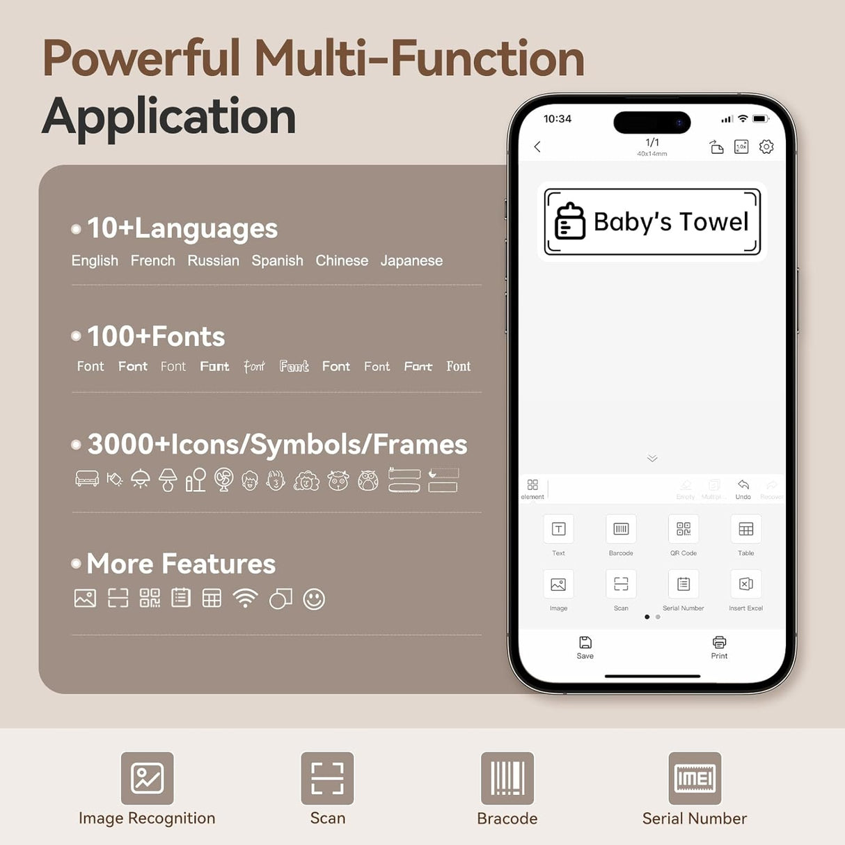 Download the free app for iOS or Android and unleash your creativity.Design personalized labels with text, barcodes, QR codes, pictures, and even scanned items Plus, import data from Excel for bulk printing.