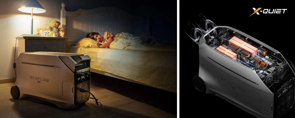 The EcoFlow DELTA Pro 3 Portable Power Station is a powerful and versatile energy solution designed to meet the demanding needs of modern homes and outdoor enthusiasts. With a robust 4096Wh capacity and 4000W continuous output, it can power nearly every home appliance. Its expandable design allows you to tailor your energy storage from 4 kWh up to 12 kWh, ensuring you always have the power you need. Enjoy whisper-quiet operation with noise levels as low as 30 dB (under 2000W load) and fast charging that reaches 80% in just one hour using advanced X-Stream technology. The plug-and-play setup and multiple charging methods provide maximum flexibility, while smart app connectivity gives you remote control of your energy system.FeaturesPowerful and VersatileDelivers 4000W output to power almost all home appliances reliably.Expandable CapacityStart at 4096Wh and expand up to 12 kWh to match your energy needs.Ultra-Quiet OperationOperates as quietly as 30 dB under moderate loads, ensuring a peaceful environment.Fast ChargingCharges to 80% in just one hour with groundbreaking X-Stream fast charging technology.Multiple Charging MethodsSupports AC, solar, car, and combo charging options for maximum convenience.Plug-and-Play DesignEnjoy hassle-free setup with an intuitive design for instant power availability.Remote ControlMonitor and manage your power station from anywhere with smart app connectivity.PortsInput PortsAC Charging Input 2000W maxSolar Charging Input Up to 1600W max, 11-60V, 15ACar Charging Input 12V24V, 10A maxOutput PortsAC Output 3 outlets with 4000W continuous output (surge up to 6000W)USB-A Output 2 ports (5V, 2.4A)USB-C Output 2 ports (up to 100W)DC5521 Output 2 ports (12.6V, 3A)The EcoFlow DELTA Pro 3 Portable Power Station offers a 4096Wh capacity and 4000W output with expandable storage up to 12 kWh. With ultra-quiet operation, fast charging to 80 percent in one hour, and versatile charging methods, it is the ideal plug-and-play power solution for home backup and outdoor ...The EcoFlow DELTA Pro 3 Portable Power Station offers a 4096Wh capacity and 4000W output with expandable storage up to 12 kWh. With ultra-quiet operation, fast charging to 80 percent in one hour, and versatile charging methods, it is the ideal plug-and-play power solution for home backup and outdoor ...