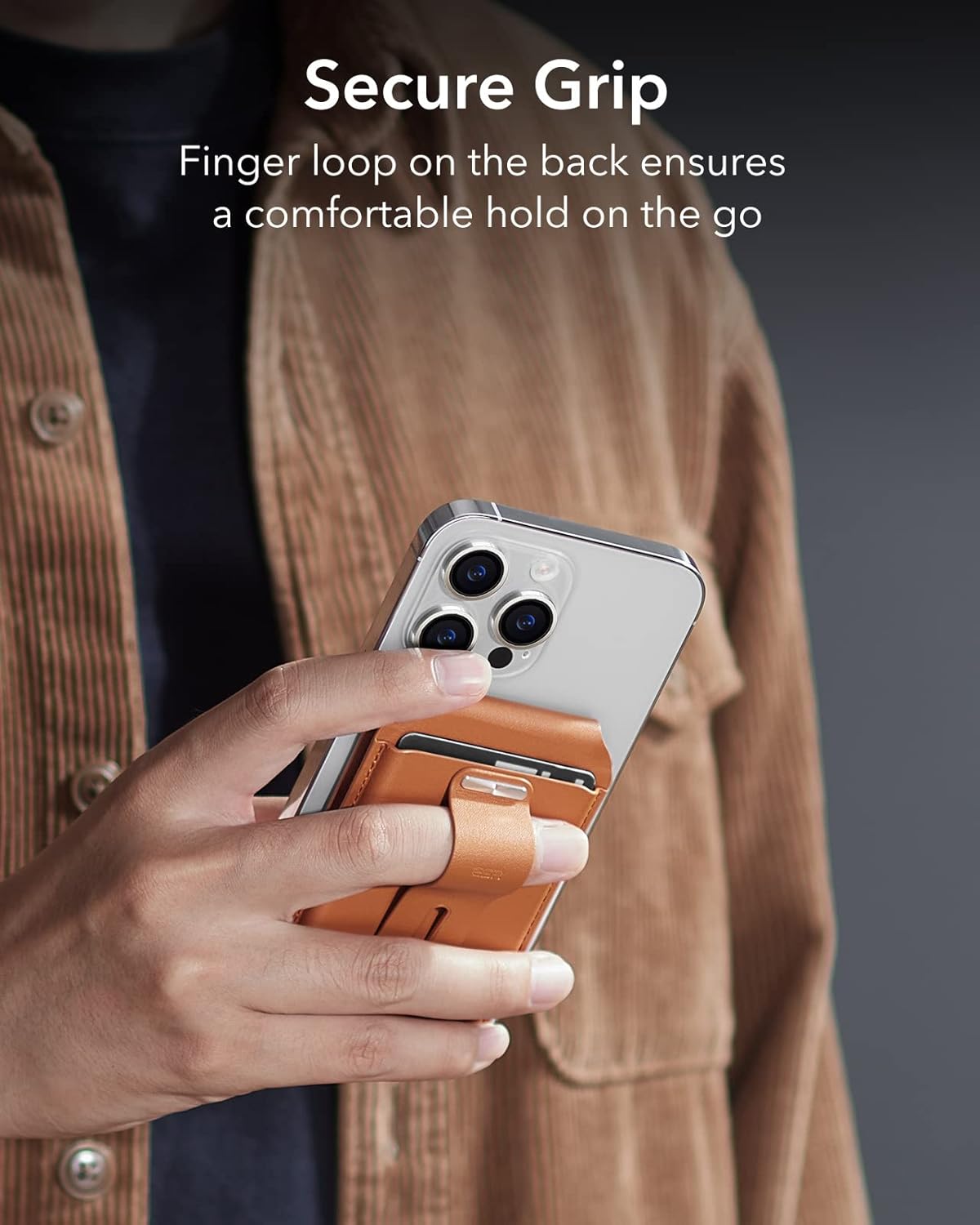Secure Grip Specially designed finger loop on the back gives you a comfortably better grip on the go and quickly folds flat when you're ready to pocket your phone