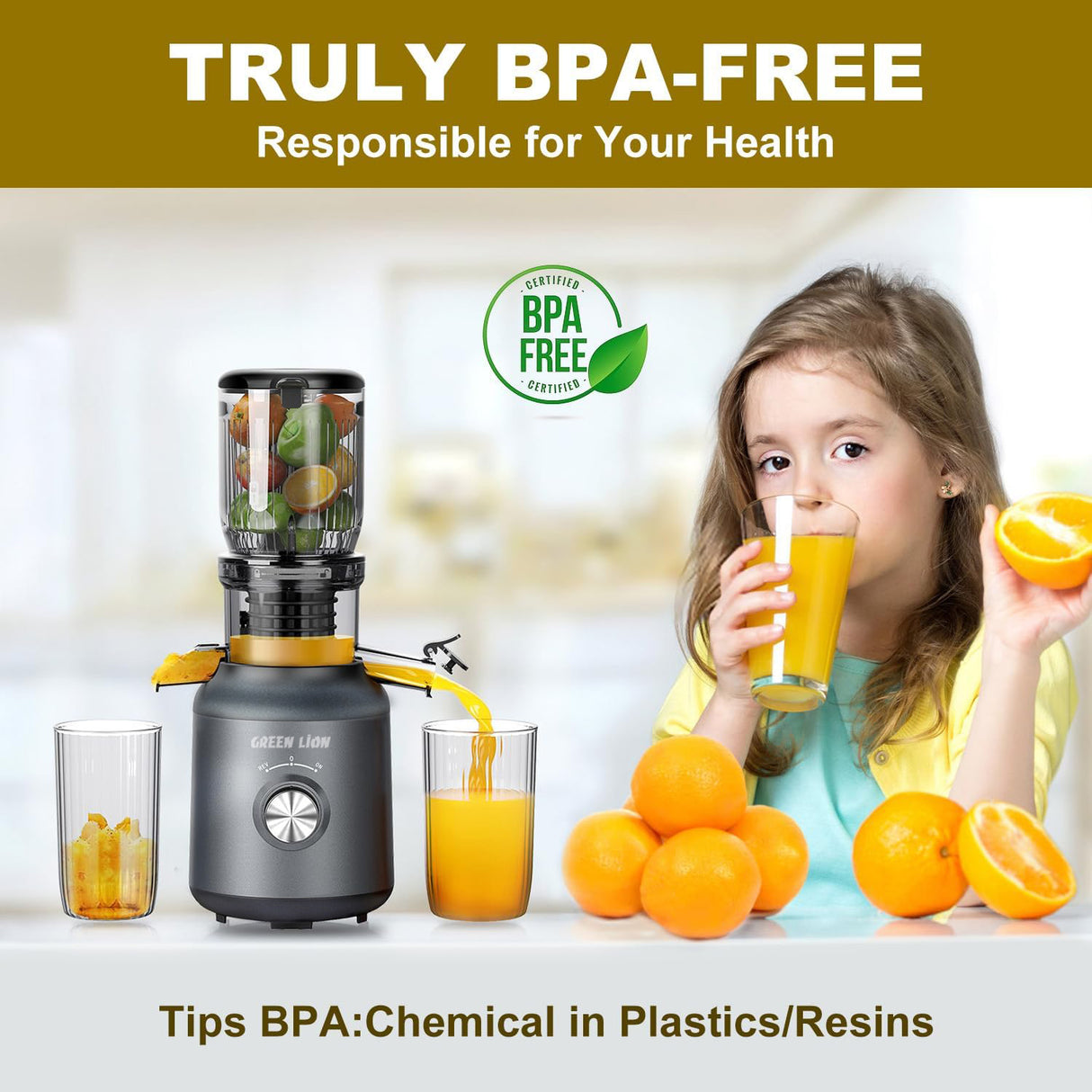 Enjoy fresh, nutrient-packed juice every day with Green Lion Slow Juicer Pure Copper Motor.This juicer features a one-button operation system, making it easy to use and suitable for anyone.FeaturesLarge Capacity Juicer103MM caliber and 1.2L capacity allow you to extract more vegetables and fruits. Cold juicer with protection to prevent hands from entering by mistake.250W Slow Juicer TechnologyMaximize juice yield and retain essential nutrients with GreenLion's Slow Juicer. Uses 250W motor and masticating technology to gently crush, cut, and press ingredients for nutrient-rich juice.Safe and Quiet JuicerDesigned with safety in mind, the masticating juicer has a "stop when opened" lid lock to prevent injuries and operates quietly for a peaceful juicing experience.Dual Filters for Soft and Hard FruitsEquipped with two specialized filtersgray for soft fruits and black for harder fruits and vegetablesthis juicer ensures maximum juice extraction without clogging, preserving the natural flavors of your ingredients.Easy to clean and assembleAssembly and disassembly are quick and simple, taking just seconds to get started. With easy-to-rinse parts and included cleaning brushes, you can easily maintain the juicer. The built-in safety sensor ensures the juicer only operates when properly assembled, for added peace of mind.Nutrition PreservationOperating at a low speed of 50-60 RPM, the GreenLion Slow Juicer minimizes heat build-up and oxidation, preserving the nutritional value of your juice and providing you with fresh, healthy drinks every time.The GreenLion Slow Juicer with Pure Copper Motor uses cold press technology to maximize juice yield while preserving nutrients. With easy operation, dual filters, and quiet performance, its the perfect choice for fresh, healthy juices at home.The GreenLion Slow Juicer with Pure Copper Motor uses cold press technology to maximize juice yield while preserving nutrients. With easy operation, dual filters, and quiet performance, its the perfect choice for fresh, healthy juices at home.