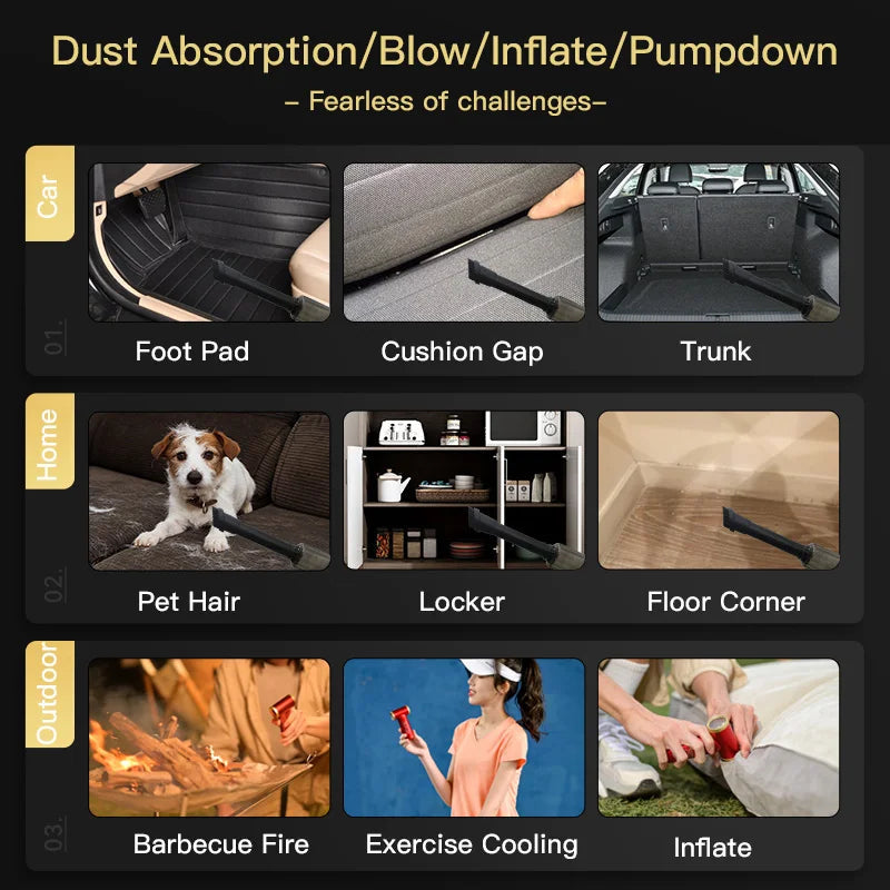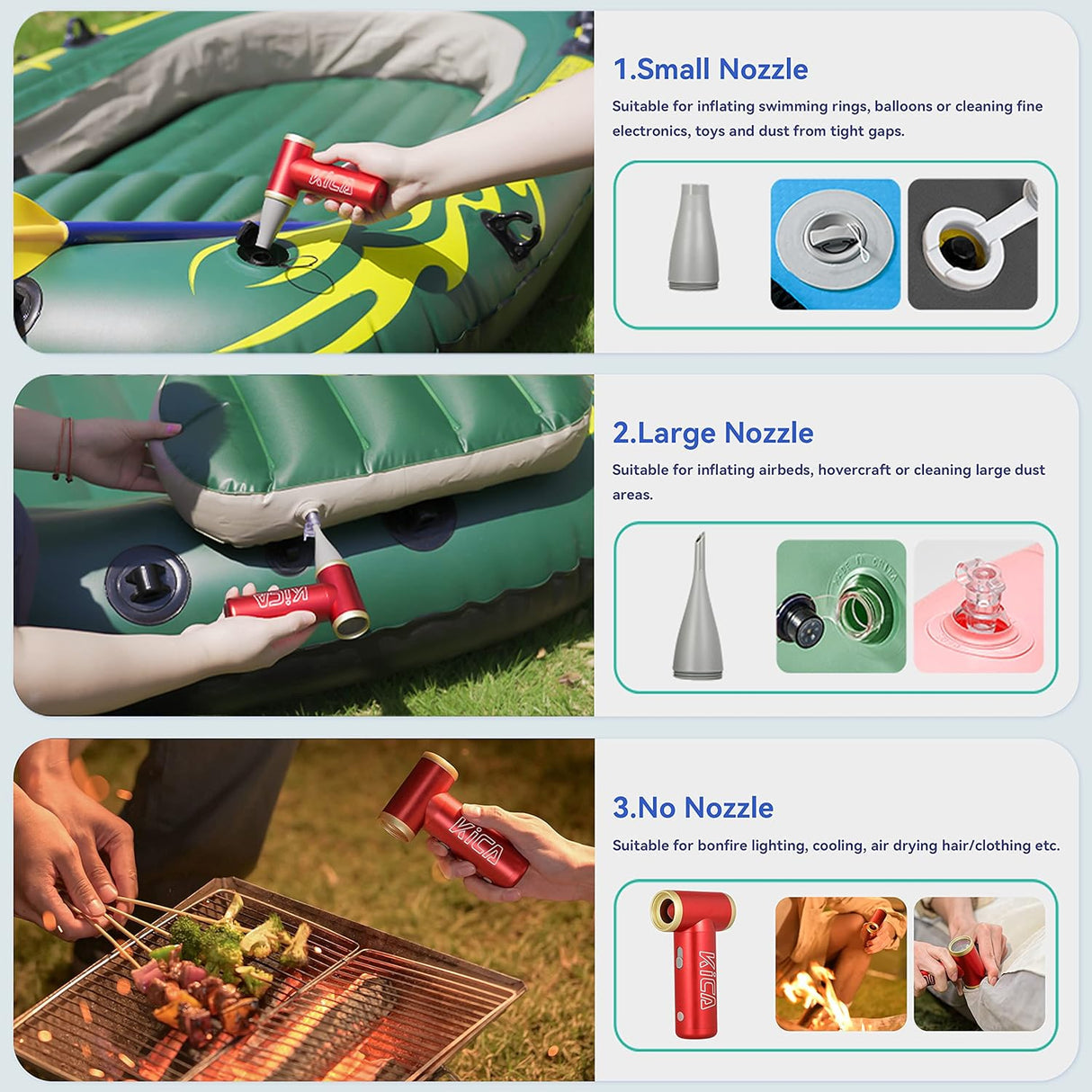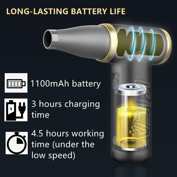 KICA Jet fan 2 Rechargeable Electric Air Blower with vacuum kit, Air Duster for Computer, Keyboard, House Cleaning, Car Dust, Hair Drying, Air Inflation.