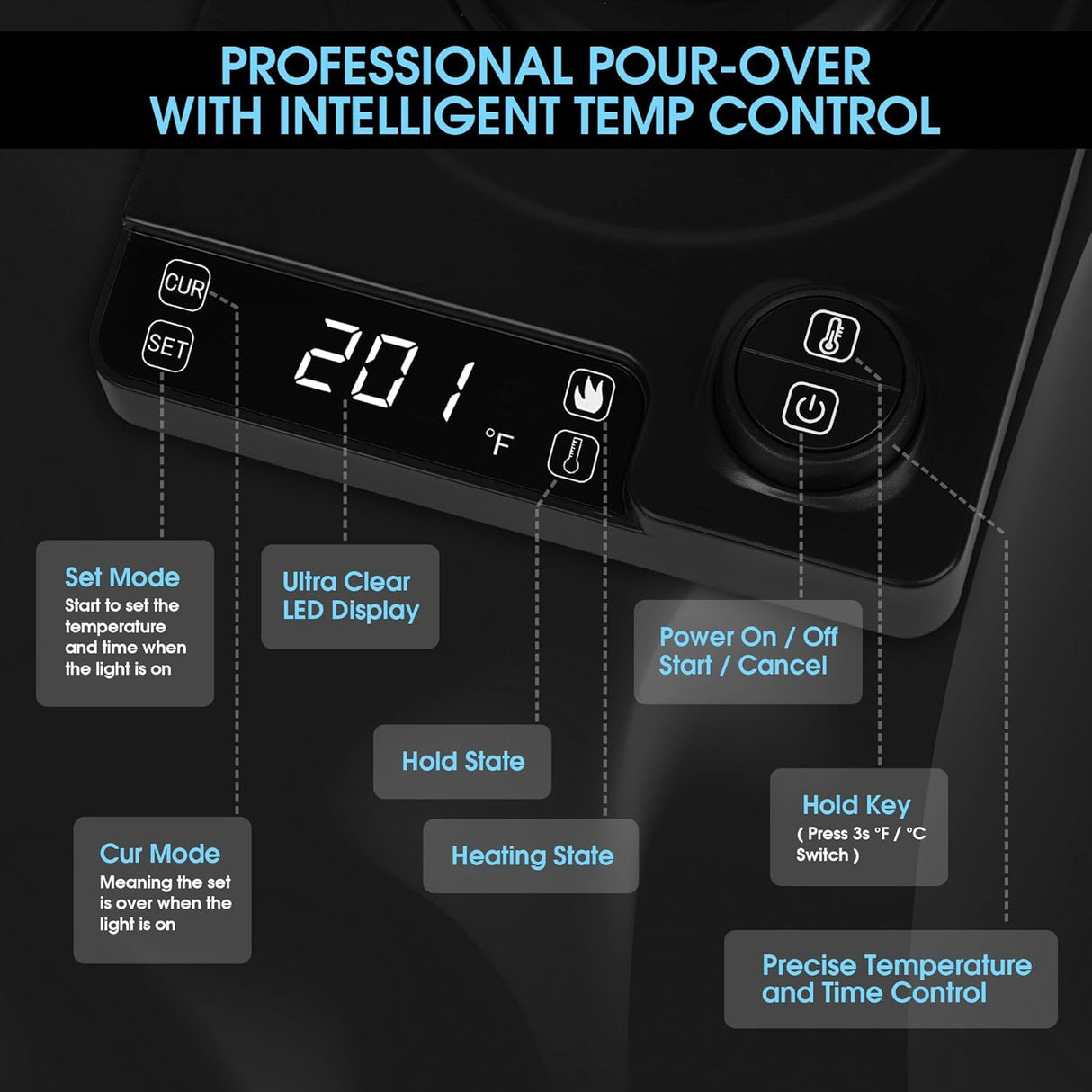 The KT10 PRO Electric Kettle combines advanced features with sleek design to bring you an exceptional brewing experience. With precise temperature control, fast heating, and a range of smart safety features, this kettle is perfect for those who take their coffee and tea seriously.