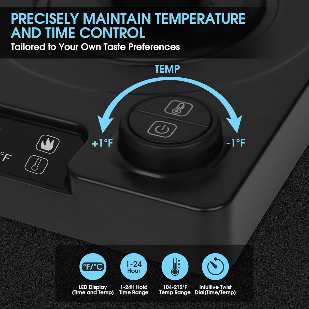The KT10 PRO features an easy-to-use knob for selecting your desired temperature between 104F to 212F, allowing you to fine-tune your brew. Plus, the memory function recalls your last temperature setting for up to 30 minutes, saving you time.