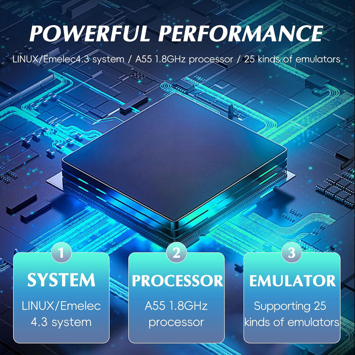 Smooth performance powered by a Cortex-A55 1.8GHz processor running LINUXEmuELEC 4.3.