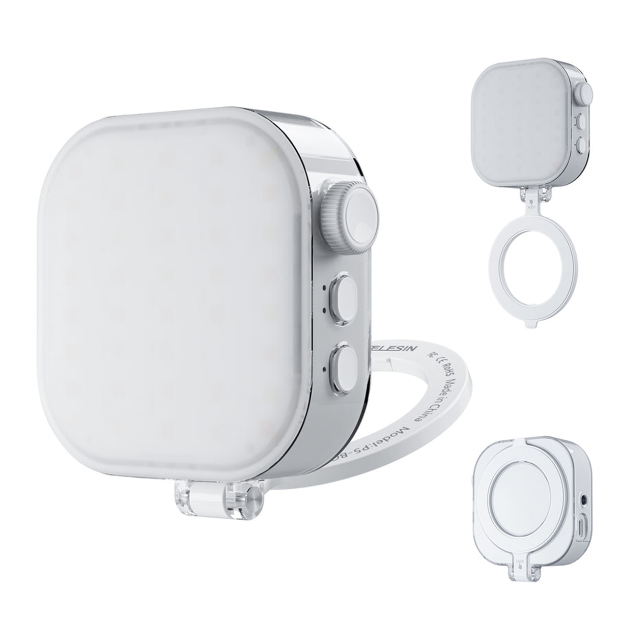 Mobile Phone Magnetic Ice Cube Lamp by TELESIN. Adjustable lighting with 60 LEDs and a wide color range. It attaches quickly to phones, laptops, or magnetic surfaces, making it ideal for content creators and video calls.FeaturesCinematic Clarity AnywhereEquipped with 60 high-performance LEDs, CRI 95+, and adjustable color temperature from 2500K9000K to eliminate harsh shadows and deliver natural skin tones in any setting.Instant Mounting, MagSafe-ReadyStrong built-in magnets (MagSafe compatible) and a universal clip let you securely attach the light to iPhones (1216), Androids, laptops, or metal surfaces in secondsno setup required.Creative RGB ModesChoose between Hot, Cold, or Mixed light with full 360 RGB range for mood lighting, vibrant video shoots, or expressive storytellingideal for TikTok, vlogging, or live streams.Portable Powerhouse2000mAh rechargeable battery gives up to 2 hours at max brightness; ultra-lightweight (100g) and compact enough to fit in any pocket or creator bag.Perfect for Creators & GiftingA must-have tool for influencers, mobile photographers, and remote professionalsdelivers professional lighting without bulky gear or cables.TELESIN Magnetic RGB Selfie Light | 360 LED Video Light for iPhone, Android & Laptop Description Upgrade your mobile content with the TELESIN MagRGB Selfie Light. Features CRI95+ LEDs, full RGB color, 2500K9000K color temp, 2000mAh battery, and MagSafe compatibility for perfect lighting on the g ...TELESIN Magnetic RGB Selfie Light | 360 LED Video Light for iPhone, Android & Laptop Description Upgrade your mobile content with the TELESIN MagRGB Selfie Light. Features CRI95+ LEDs, full RGB color, 2500K9000K color temp, 2000mAh battery, and MagSafe compatibility for perfect lighting on the g ...