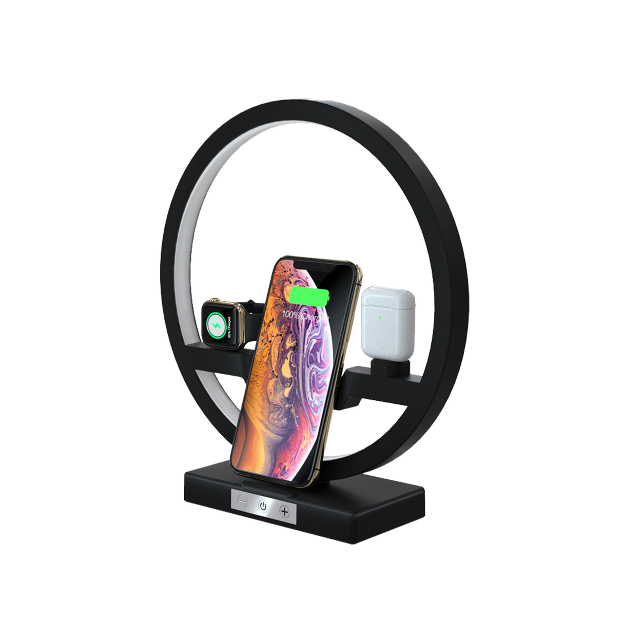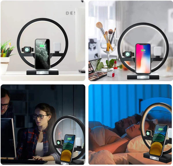 All-in-One multifunctional wireless charger and desk lamp is a stylish desk lamp. You can charge your iPhone, air pod, apple watch together with this device.FeaturesWireless Charging Station Charge your iPhone, Apple Watch, and AirPods simultaneously. No more hunting for individual chargers! Also you can charge your other qi enable devices like samsung, huawei, etc.Fast & Flexible High-speed wireless charging gets your devices back to full power quickly. Plus, a USB port provides additional charging options.Multiple Device Compatibility Works seamlessly with a wide range of Qi-enabled phones, Apple Watches and Airpods.Eye-Caring Illumination Non-flickering LED light with adjustable brightness protects your eyes, perfect for working, reading, or relaxing.Touch Control Convenience Easily adjust light temperature and brightness with a touch-sensitive base.Modern & Sleek Design The sleek black design complements any decor, making it a beautiful desk accessory.This 3-in-1 desk lamp charges your phone, Apple Watch & AirPods wirelessly. It features adjustable brightness, color temperature light, and a touch control base. Perfect for a modern workspace or nightstand. Shop now!This 3-in-1 desk lamp charges your phone, Apple Watch & AirPods wirelessly. It features adjustable brightness, color temperature light, and a touch control base. Perfect for a modern workspace or nightstand. Shop now!