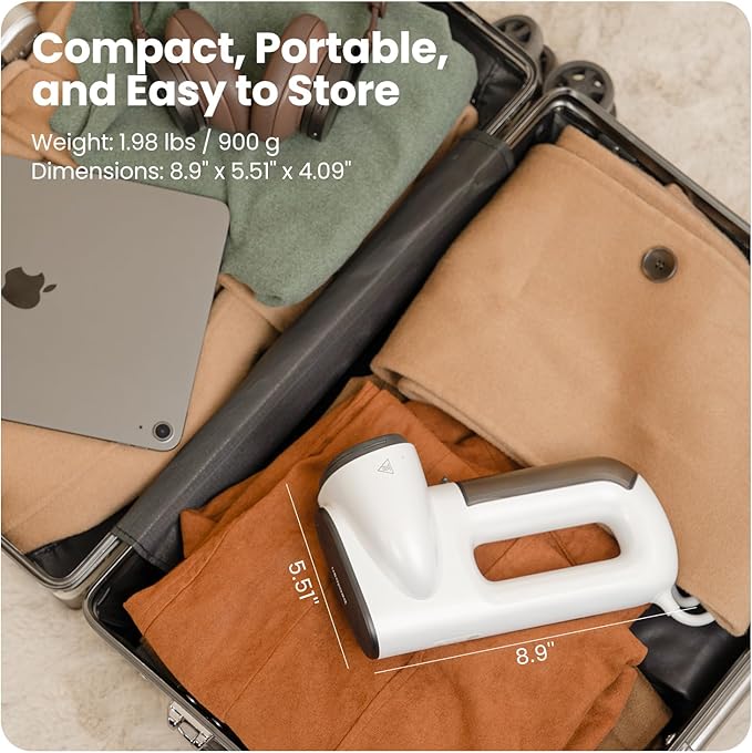 Compact, Lightweight & Travel-Ready: Weighing only 900g and equipped with a removable 95ml water tank, this sleek steamer is perfect for travel, business trips, or everyday home use. One full tank delivers enough steam for 3–5 shirts—no constant refills needed.