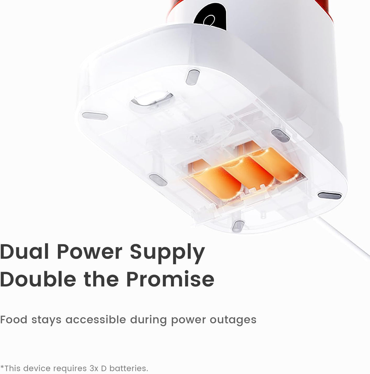 Never miss a feeding! The feeder operates on both AC power and batteries (sold separately) to ensure uninterrupted feeding even during power outages.