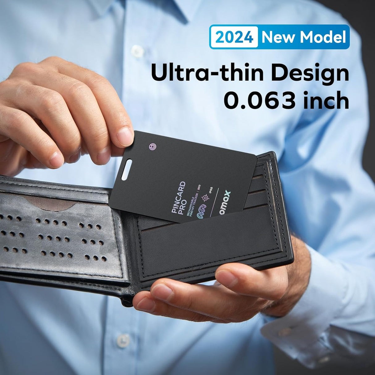 The Momax PinCard Pro is a slim, rechargeable tracker that works with Apples Find My network. Easily connect it via the Apple Find My app to keep track of your valuables anytime.FeaturesBuilt for Privacy, Designed for SafetyThe PinCard Pro offers precise tracking with built-in anti-stalking and location privacy features, keeping your personal data secure and giving you full control.Instant Alerts & Two-Way Find TechnologyLost your keys or wallet? The two-way buzzer system makes it easy to locate your items in seconds. Plus, set up anti-loss notifications to alert you if you ever leave something behind.1-Year Battery Life & Wireless ChargingStay powered all year long with a 100mAh high-capacity rechargeable batteryno constant charging required. When it's time to recharge, just place the tracker on any wireless charging pad for fast, cable-free power.Sleek, Durable, and Travel-ReadySlip the ultra-slim tracker into your wallet, attach it to your keys using the built-in loop, or tuck it into any pocket or bag. Its IP68 waterproof and dustproof, so its built to survive the elementsrain, splashes, and all.Momax PinCard Pro is a slim, rechargeable Bluetooth item tracker compatible with Apple Find My. Easily track your wallet, keys, or bag in real time with two-way alerts, anti-stalking features, and long battery life. Waterproof, wireless charging, and secure location privacy make it the perfect smart ...Momax PinCard Pro is a slim, rechargeable Bluetooth item tracker compatible with Apple Find My. Easily track your wallet, keys, or bag in real time with two-way alerts, anti-stalking features, and long battery life. Waterproof, wireless charging, and secure location privacy make it the perfect smart ...