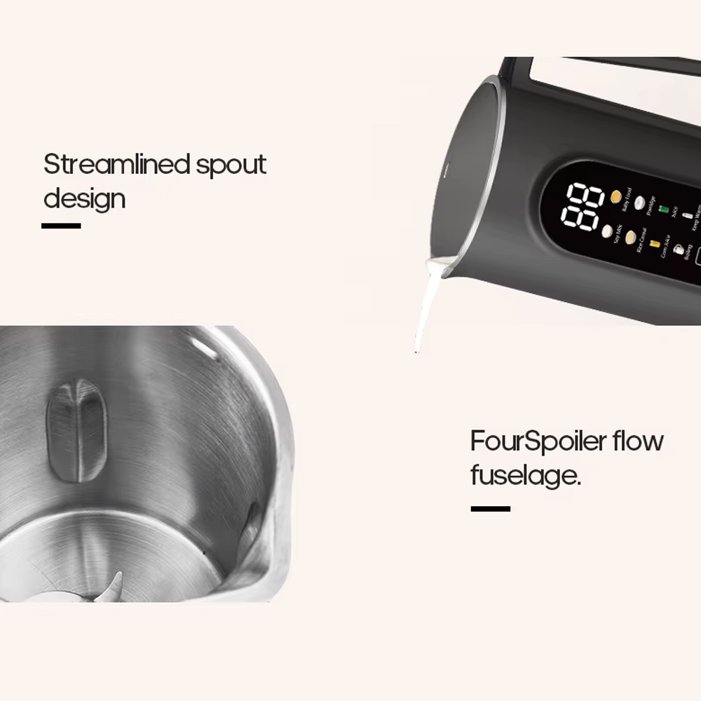 The soybean milk is equipped with 10 pieces stainless steel cutter that make the soy milk more aroma and delicate and less residue; you can enjoy the soybean milk directly