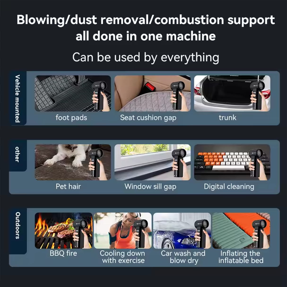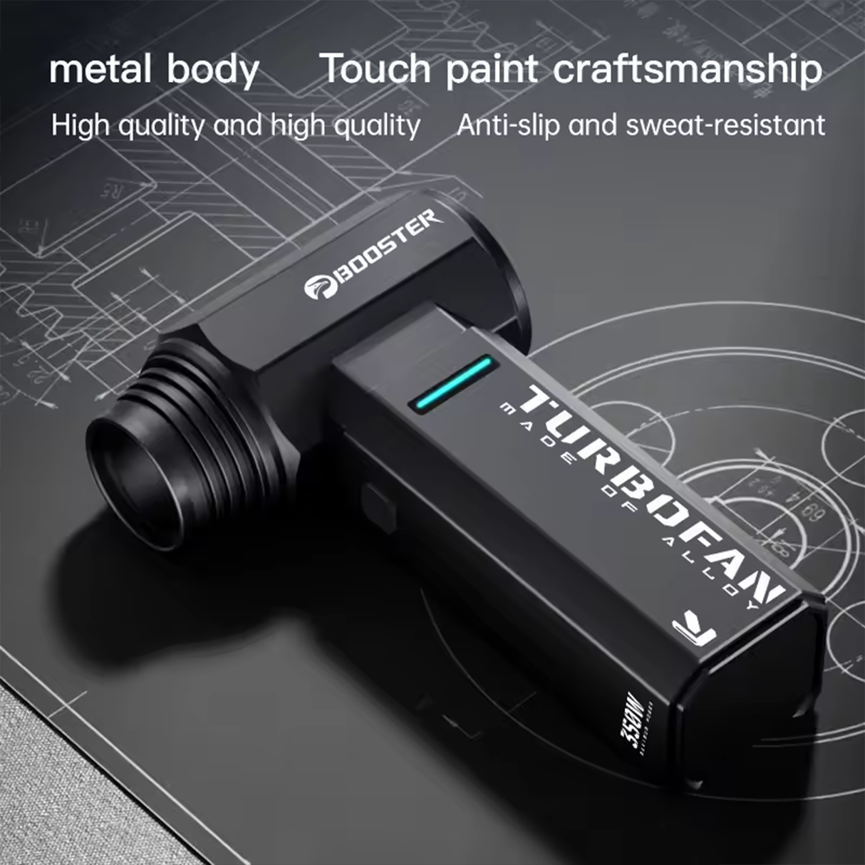 Powerful 4-Speed Mini Turbo Fan by Booster features 4 adjustable modes including an ultra-powerful boost mode. Equipped with a 350W brushless motor and long-lasting 2000mAh battery, it's perfect for multi-purpose use. Built with durable alloy and weighing only 536g, its easy to carry anywhere.Features4 Power Modes From normal to ultra-powerful (press and hold for turbo mode) to handle any task with precision.High-Speed Brushless Motor Delivers strong airflow with 350W power and a 40mm turbofan.Long Battery Life 2000mAh rechargeable battery via Type-C for extended use.Multipurpose Use Ideal for cleaning electronics, drying surfaces, inflating, or removing dust.Compact & Lightweight Weighs just 536g, made from durable alloy easy to carry and store.Shop the Booster Mini Turbo Fan 4-speed modes with ultra-power, 350W motor, and long battery life. Lightweight, durable, and perfect for multipurpose cleaning and drying.Shop the Booster Mini Turbo Fan 4-speed modes with ultra-power, 350W motor, and long battery life. Lightweight, durable, and perfect for multipurpose cleaning and drying.