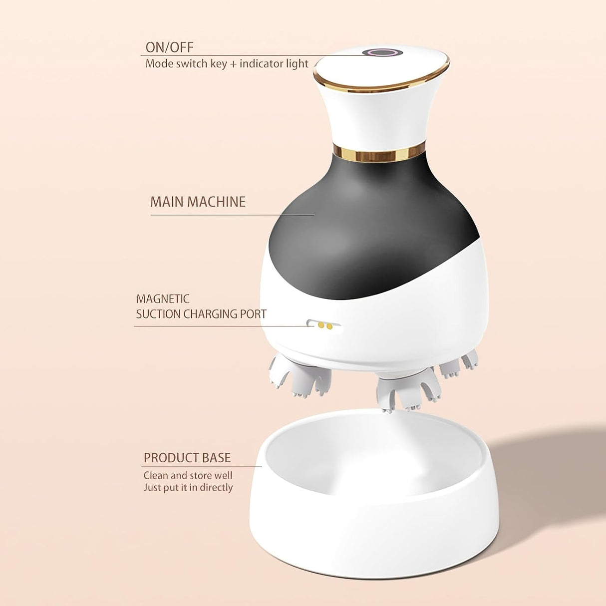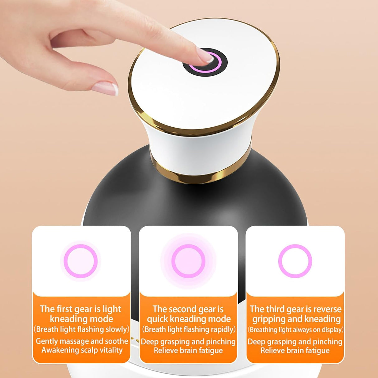 Elevate your hair care and relaxation routine with the Rechargeable Deep Kneading Scalp Massager - 3D Head Massager B27. Perfect for use at home, work, or in the shower, this portable and powerful yet gentle tool utilizes deep kneading to stimulate hair relieve headache, release fatigue, reduce stress, and promote a healthy scalp environment.FeaturesDeep Kneading Technology for Scalp VitalityEquipped with 8 flexible massage heads and 27 precision nodes each, this massager delivers a dual-directional (clockwise and anticlockwise directions) kneading motion that mimics real finger pressure. It helps improve blood circulation, relieve scalp tension, and enhance hair follicle health.IPX4 Waterproof & Shower-Safe DesignDesigned for versatility, the scalp massager is water-resistant (IPX4), making it safe for shower use. The ergonomic, non-slip handle provides comfort and controleven with wet hands. Note Do not submerge in water for extended periods.3 Massage Modes + Smart TimerWith a simple one-button control, easily switch between three massage intensity levels to suit your comfort. The 10-minute automatic shutoff ensures safe, worry-free use every timeperfect for quick relaxation breaks.Rechargeable & Cordless ConveniencePowered by a 1200mAh rechargeable battery, this scalp massager offers hours of cordless operation on a single charge. Includes a USB charging cable and compact charging base for easy storage and portability. Ideal for travel, office, or daily use at home.Soft Silicone Heads & Ideal Gift ChoiceCrafted with eco-friendly, BPA-free silicone, the massage heads are gentle on the scalp and suitable for all hair typeswet or dry. Its compact design and luxurious feel make it a thoughtful gift for friends, family, or anyone in need of relaxation.3D Head Massager - Rechargeable Scalp massager with 8 kneading heads, 3 modes, waterproof design & USB charging. Ideal for stress relief, hair growth & daily relaxation.3D Head Massager - Rechargeable Scalp massager with 8 kneading heads, 3 modes, waterproof design & USB charging. Ideal for stress relief, hair growth & daily relaxation.