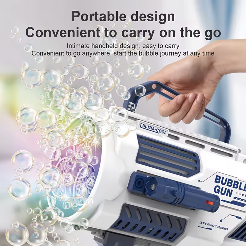Portable Fun Lightweight and compact, this bubble blaster is the perfect companion for outdoor adventures, parks, and backyard fun.