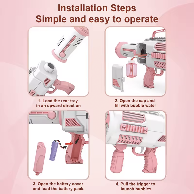 Safety First Made from non-toxic materials, our bubble gun prioritizes your child's safety and well-being.