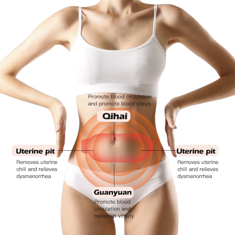 Designed to cover key acupoints like Qihai, Guanyuan, and uterine areas to promote blood circulation and reduce pain naturally.