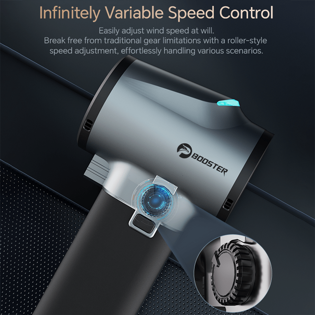 Experience impressive blowing performance in the palm of your hand. The TF64 A2 is a lightweight, cordless blower built with an ABS body and powerful brushless motor, designed to deliver high-velocity airflow for cleaning, dusting, and more.FeaturesLightweight & Durable BuildWeighing just 830g, the ABS body with a silicone-coated grip offers both portability and rugged everyday use.High-Speed Brushless MotorFeatures a 64mm, 11blade ducted fan driven by a 2822 3300KV motor spinning up to 50,000RPMgenerating strong, directed airflow.Stepless & Turbo Airflow ControlAdjustable airflow from 100g to 900g, with a turbo mode pushing up to ~1400g of thrust for powerful clearing.Long-Lasting Battery & Fast ChargingBuilt-in 4,000mAh (16.8V) battery delivers 1280 minutes of use depending on intensity, with a full recharge in ~2.5 hours using a 2A charger.Four Speed LevelsOffers four distinct power settingsfrom gentle to maximumto suit different blowing tasks.BoosterTF64A2 handheld turbo blower with 50,000RPM brushless motor and stepless airflow up to 1,400g. Four speed settings, 4,000mAh rechargeable battery, and fast chargeideal for powerful, portable blowing tasks.BoosterTF64A2 handheld turbo blower with 50,000RPM brushless motor and stepless airflow up to 1,400g. Four speed settings, 4,000mAh rechargeable battery, and fast chargeideal for powerful, portable blowing tasks.