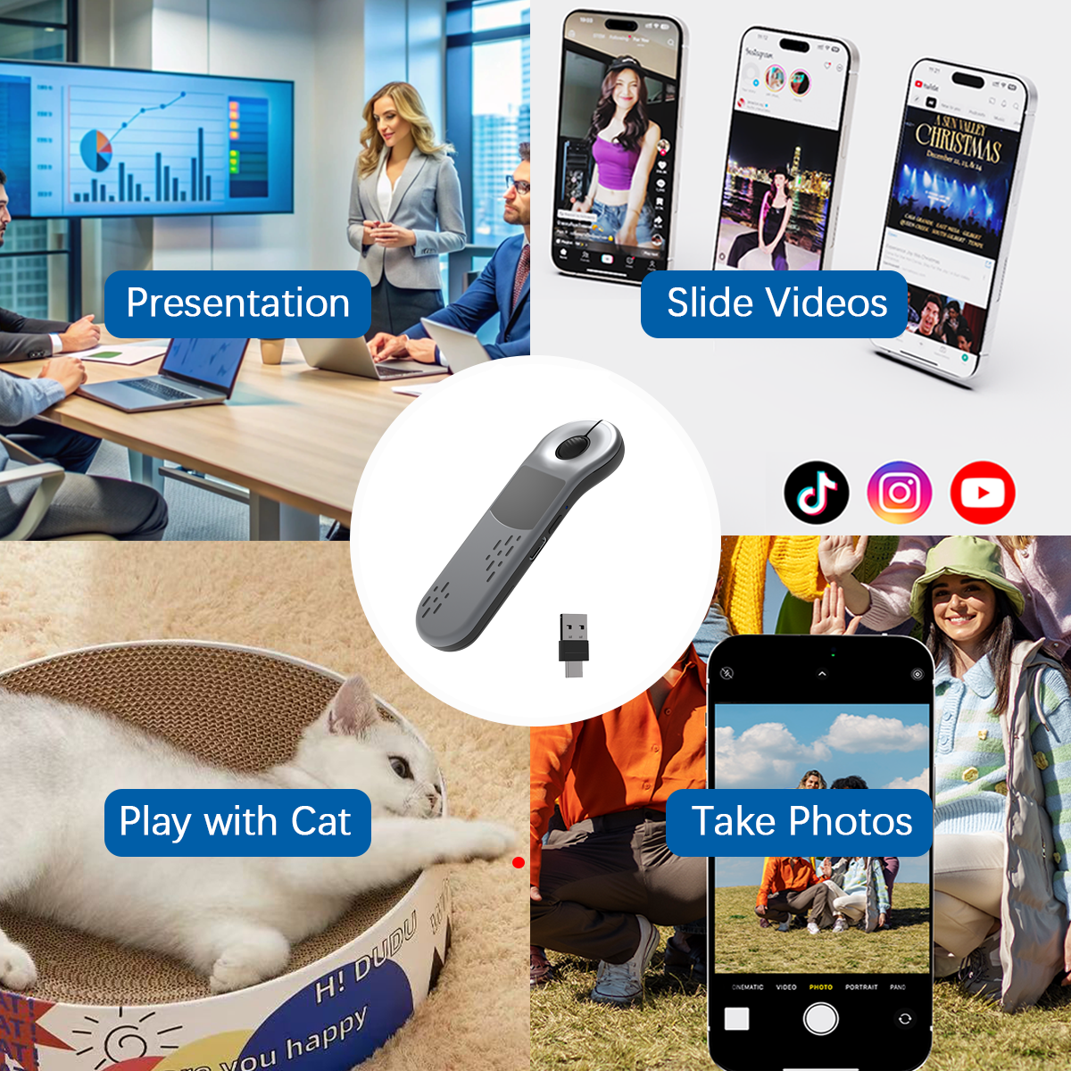 Multi-Functional Air Laser Mouse combining gesture-based navigation, voice commands, and broad device compatibility into a compact, ergonomic design. Perfect for presentations, smart home setups, and everyday media control.